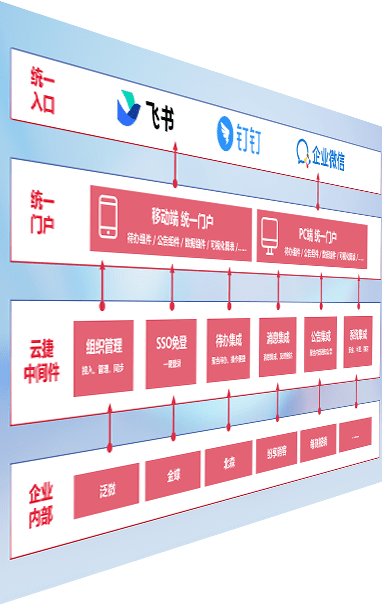 对协作平台提供支持服务,,支持企业应用与协作平台对接,,包含组织同步、、、、消息集成、、、待办集成等。。。。支持目前主流的协作平台:钉钉、、、、企微和飞书。。。。